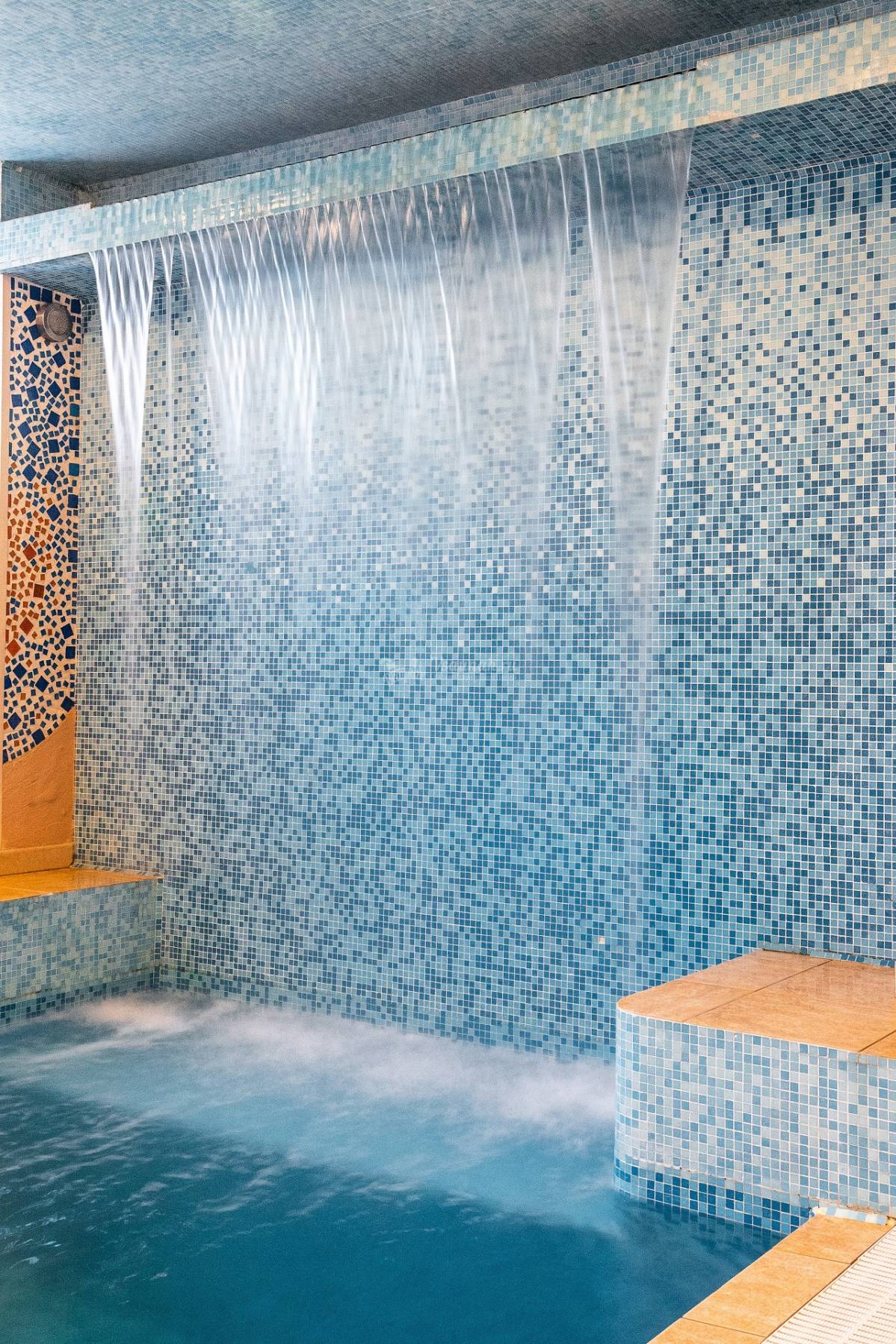 Парилка горячая, мы долго не могли сидеть, а вот в тёплом бассейне позависали